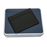 Картхолдер выполнен из натуральной кожи бренда Miguel Bellido. Снаружи на лицевой стороне два кармашка для пластиковых карт, на задней стенке один кармашек для пластиковых карт. Внутри одно отделение для пластиковых карт. Оснащено RFID-защитой, что позволяет защитить банковские карты от считывания. Упаковано в подарочную жестяную коробку.