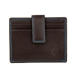 Картхолдер из натуральной кожи. Раскладывается пополам, закрывается на хлястик с кнопкой. Внутри сетчатый кармашек, 3 кармашка для пластиковых карт. Снаружи с обеих сторон расположены кармашки для пластиковых карт. Имеет защитный слой от считывания карт RFID Protection. Товар упакован в подарочную коробку от бренда Miguel Bellido. Размеры: 8 х 10,5 х 2 см.