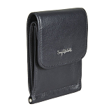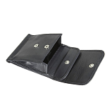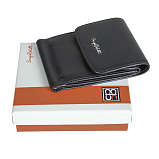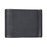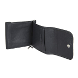 Внутри металлический зажим для купюр, отделение для монет на копке и кармашек для мелких предметов. Закрывается клапаном на кнопке.