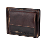 Зажим для денег Gianni Conti. Раскладывается пополам. Внутри: металлический зажим для купюр, четыре кармана для пластиковых карт. Снаружи: карман для монет на кнопке.