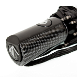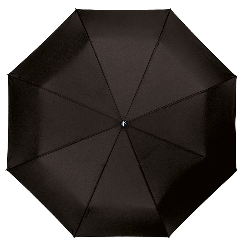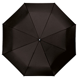 Мужской чёрный зонт, автомат-три сложения, каркас анодированная сталь, восемь спиц, радиус 58 см, ручка пластик, вес 415 г.