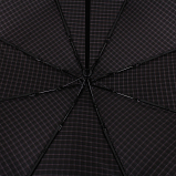 Классический мужской зонт в клетку. Система «Антиветер». Полный автомат в 3 сложения. Открывается и закрывается посредством кнопки, фиксируется вручную. Увеличенный купол из качественного эпонжа (100% полиэстер) с пропиткой от влаги и грязи. Усиленный каркас: алюминий, анодированная сталь, фибергласс. Кожанная эргономичная ручка крюк. Размеры: 32 x 6 см. Диаметр купола: 116 см; 8 спиц. Вес: 0,500 кг. Чехол в комплекте.