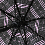 Автомат, три сложения, каркас из анодированной стали, восемь спиц, диаметр купола 116 см, тефлоновая пропитка материала купола, кожаная ручка в форме крюка. Вес 460 грамм.