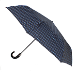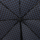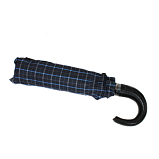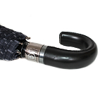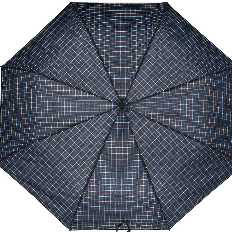 Клетчатый мужской серый зонт, автомат-три сложения, каркас анодированная сталь, восемь спиц, радиус 58 см, ручка крюк кожа, вес 460 г