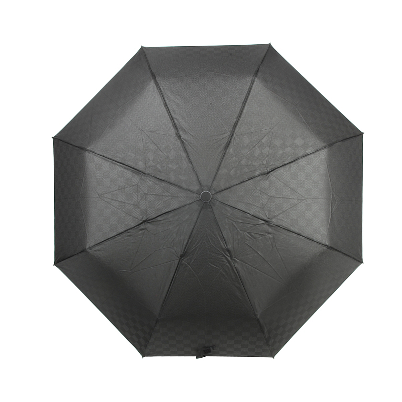 Зонт с механизмом автомат три сложения, каркас из анодированной стали, восемь спиц, диаметр купола 56 см., пластиковая прорезиненная ручка крюк