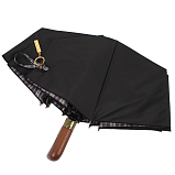 Стильный мужской зонт! Купол увеличенный, имеет двойную ткань: однотонный верх и модную клетку на его внутренней стороне. Удачное сочетание классики с современным направлением! Деревянная ручка и винтажная позолота, которой инкрустированы элемены зонта, вносит в дизайн дополнительный шик. К каждому зонту в подарок изящный брелок в виде золотого слитка. Купол - 137 см.