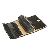 Кожаный чёрный органайзер для ювелирных украшений и бижутерии. Внутри одно объёмное отделение на молнии, две полосы под кольца и серьги с апликаторами для бережного хранения, и два кармашка на молниях.