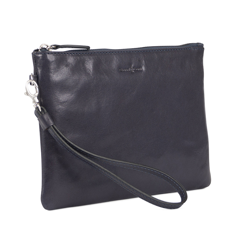 Женский клатч от итальянского бренда Gianni Conti. Выполнен из натуральной кожи. Закрывается на молнию. Внутри основное отделение, в котором два кармашка для мелких предметов и два держателя для авторучки. Оснащена съёмным ремешком на запястье. Цвет фурнитуры - серебро.