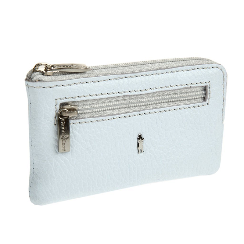 Закрывается на молнию. Внутри отдел с двумя кольцами для ключей. Снаружи на задней стенке кармашек на молнии.