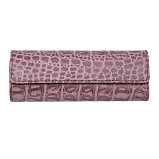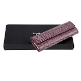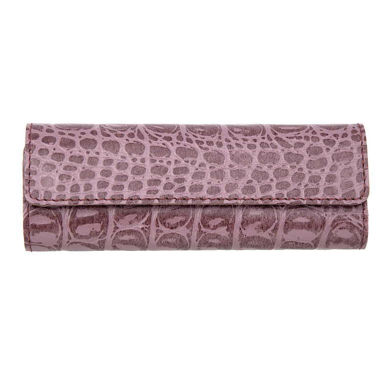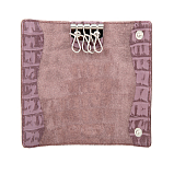 Розовая ключница из натуральной кожи с выделкой под рептилию. Внутри четыре крючка для ключей. Закрывается на две кнопки. Товар упакован в подарочную коробку от бренда Sergio Belotti. Размеры: 5 х 13 х 2 см.
