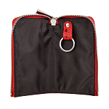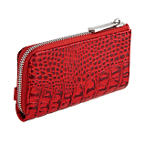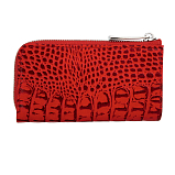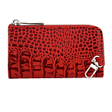 Ключница из натуральной кожи красного цвета с выделкой под рептилию. Закрывается на молнию. Внутри отделение с кольцом для ключей, снаружи карабин для фиксации ключницы в сумке или на ремне. Товар упакован в подарочную коробку от бренда Sergio Belotti. Размеры: 14 х 8 х 2 см.