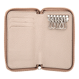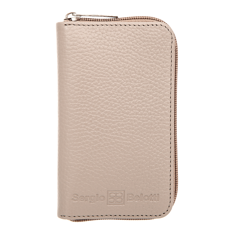 Бежевая кожаная ключница от бренда Sergio Belotti. Закрывается на молнию. Внутри шесть карабинов для ключей и три кармашка для пластиковых карт. Товар упакован в подарочную коробку от бренда Sergio Belotti. Размеры: 13,5 х 8 х 2 см.