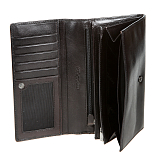 Кошелек закрывается широким клапаном на кнопке, обеспечивая надежность и безопасность ваших вещей.
