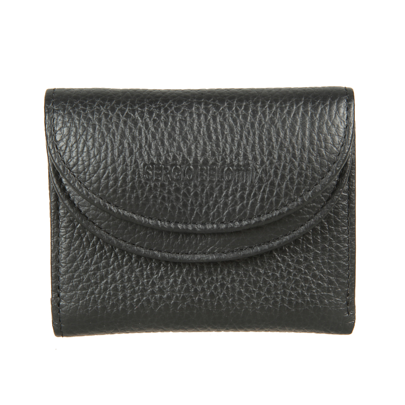 Функциональное портмоне из натуральной итальянской кожи естественной фактуры. Выполняет функции кошелька. Внутри отделение для купюр. карман для монет на кнопке. 2 кармашка для пластиковых карт. Закрывается широким клапаном на кнопке. Товар упакован в подарочную коробку от бренда Sergio Belotti.