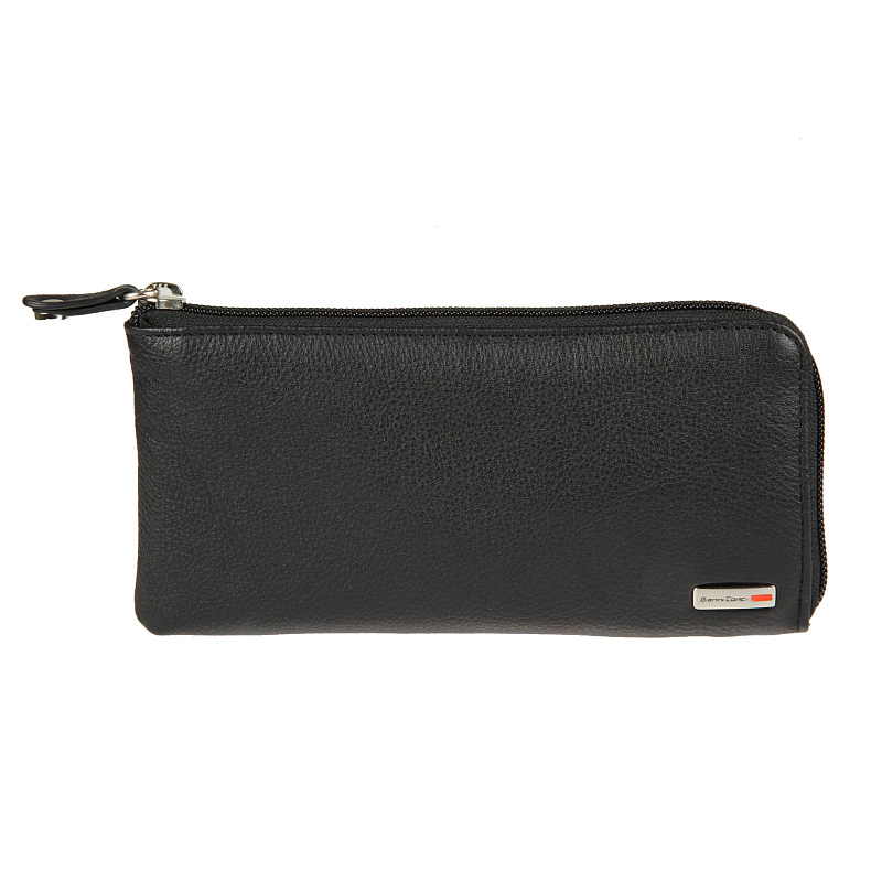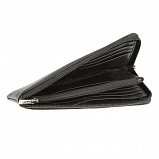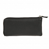 Женский чёрный кошелёк на молнии из натуральной кожи естественной фактуры. Внутри два отделения для купюр, продольный карман для монет на молнии, два кармана для документов, пятнадцать кармашков для пластиковых карт и один карман для пропуска.