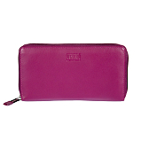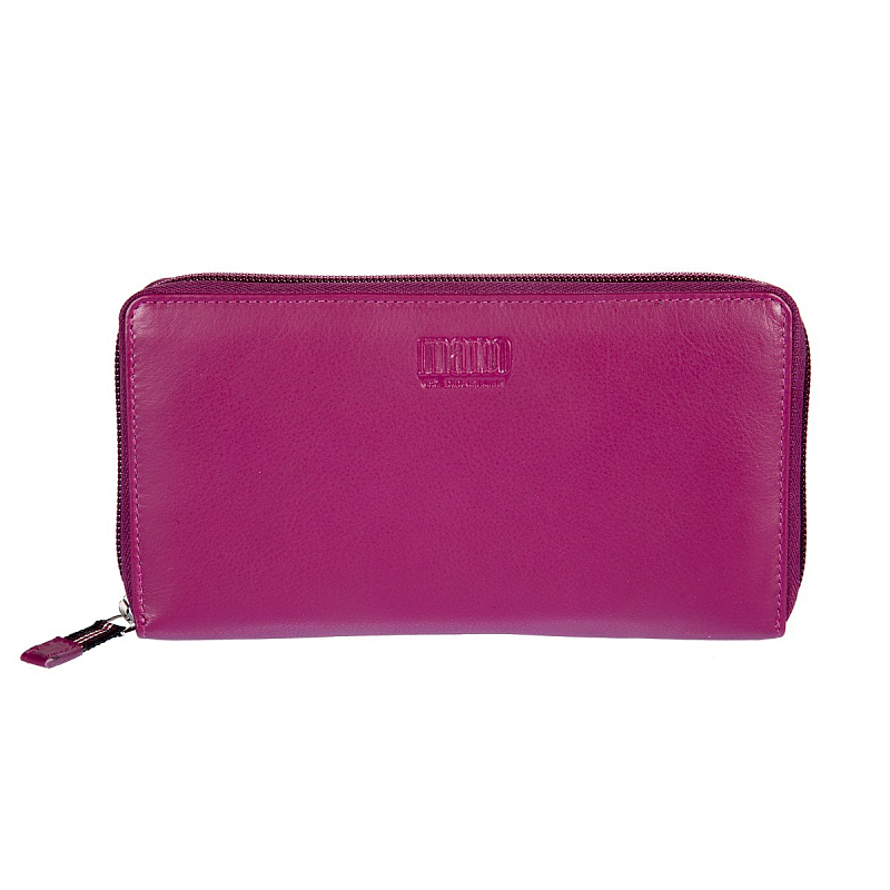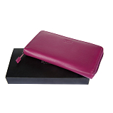 Внутри четыре отделения для купюр, разделённых карманом для монет на молнии. На внутренних стенках расположены два кармана для документов и восемь кармашков для пластиковых карт. Закрывается на молнию по периметру.