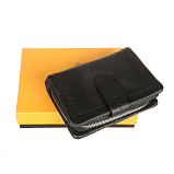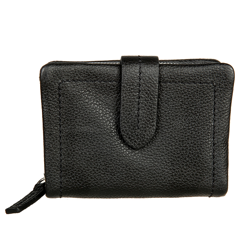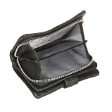 Портмоне закрывается клапаном на кнопке. Внутри два отделения для купюр, четыре кармана для документов, десять кармашков для пластиковых карт. Снаружи на задней стенке двойное отделение для монет на молнии. Оснащено RFID Protection (защитным слоем от считывания карт)