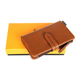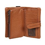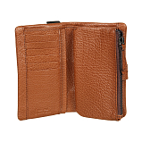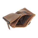 Портмоне закрывается клапаном на кнопке. Внутри два отделения для купюр, отдел для монет на молнии, три кармана для документов, один потайной карман, двенадцать кармашков для пластиковых карт. Оснащено RFID Protection (защитным слоем от считывания карт)