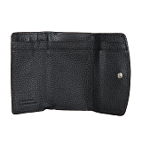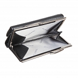 Внутри два отделения для купюр, один потайной карман. Закрывается клапаном на кнопке. С внешней стороны отделение для монет на рамочном замке.