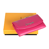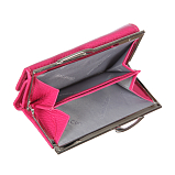 Внутри два отделения для купюр, один потайной карман. Закрывается клапаном на кнопке. С внешней стороны отделение для монет на рамочном замке.