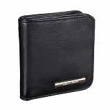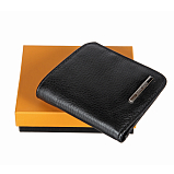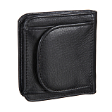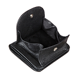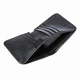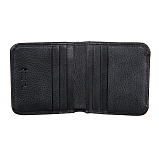 Женское чёрное портмоне из мягкой натуральной кожи. Внутри два отделения для купюр и восемь кармашков для пластиковых карт. С внешней стороны на задней стенке монетница на кнопке. Незаменимый аксессуар для маленькой сумочки или клатча.