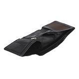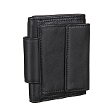 Внутри два отделения для купюр, четыре потайных кармана, карман на молнии, кармашек для SIM-карты, сетчатый карман и шесть кармашков для пластиковых карт. Закрывается клапаном на кнопке. С внешней стороны на задней стенке расположен карман для монет на кнопке