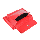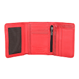 Внутри два отделения для купюр, четыре потайных кармана, карман на молнии, кармашек для SIM-карты, сетчатый карман и шесть кармашков для пластиковых карт. Закрывается клапаном на кнопке. С внешней стороны на задней стенке расположен карман для монет на кнопке