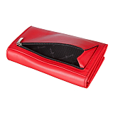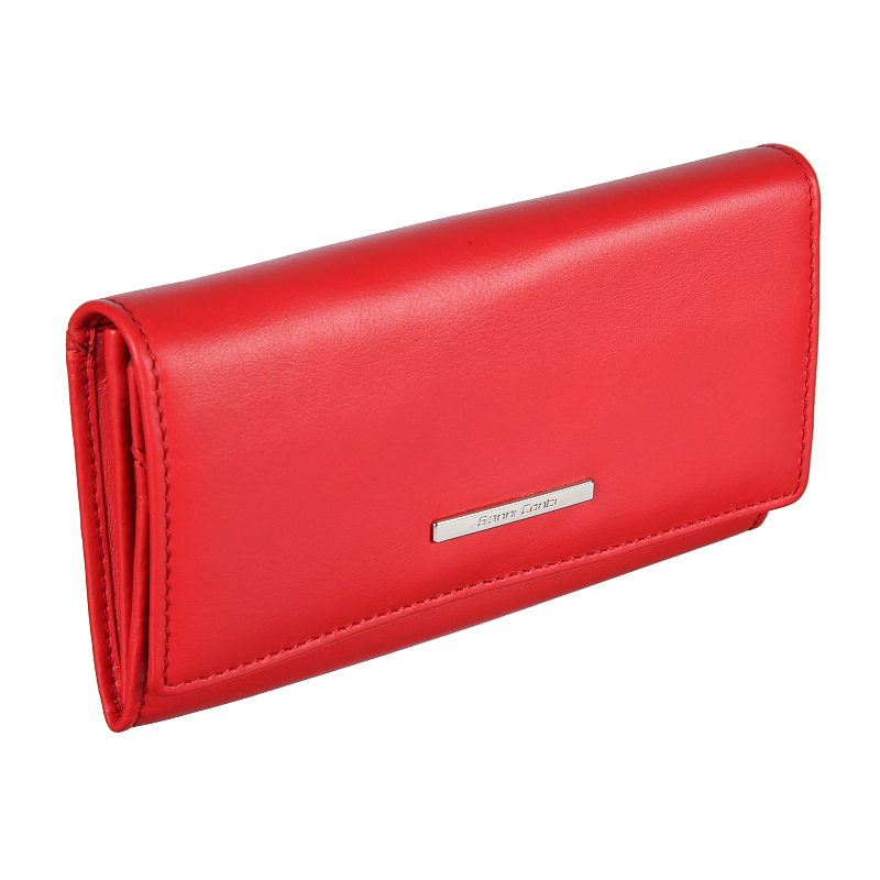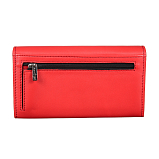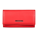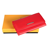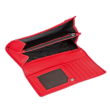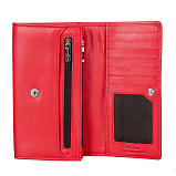 Внутри два отдела для купюр, продольный карман на молнии, два кармана для документов, семь кармашков для пластиковых карт. На передней стенке под клапаном два кармана, один из них на молнии. Снаружи на задней стенке отделение для монет на молнии и открытый продольный карман. Портмоне закрывается на кнопку.