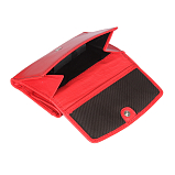 Внутри два отделения для купюр, карман для монет на кнопке, два потайных кармана и восемь кармашков для пластиковых карт. Закрывается на кнопку