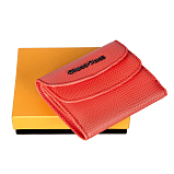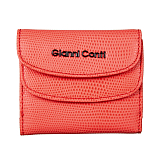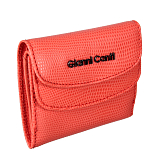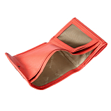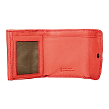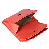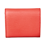 Женский коралловый кожаный кошелёк с тиснением под рептилию. Внутри два отделения для купюр и сетчатый карман для пластиковой карты. С внешней стороны на лицевой стенке карман для монет на кнопке. Незаменимый аксессуар для маленькой сумочки или клатча
