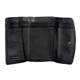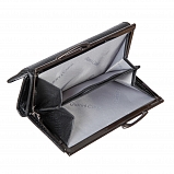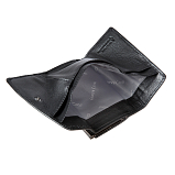 Внутри два отделения для купюр, один потайной карман. Закрывается клапаном на кнопке. С внешней стороны отделение для монет на рамочном замке.