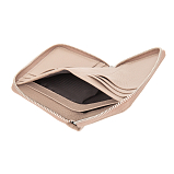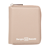 Женское бежевое кожаное портмоне на молнии. Внутри два отделения для купюр, четыре потайных кармана и шесть кармашков для пластиковых карт. На задней стороне расположен карман для монет на молнии. Товар упакован в подарочную коробку от бренда Sergio Belotti. Размеры: 13 х 10 х 3 см.