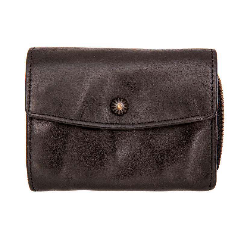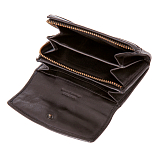 Кожаное портмоне в винтажном стиле от Gianni Conti. Изготовлено из натуральной кожи чёрного цвета. Внутри два отделения для купюр, два кармана для пластиковых карт, двойное отделение для монет на молнии и один потайной карман. Портмоне закрывается клапаном на кнопку. Снаружи на задней стороне расположен продольный открытый карман. Упаковано в подарочную коробку.