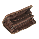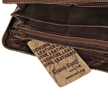 Портмоне выполнен из натуральной кожи с эффектом потёртости, что придаёт изделию винтажный вид. Закрывается на молнию по периметру. Внутри 4 отделения для купюр, отделение для мелочи на молнии, 2 отдела для документов, 8 кармашков для пластиковых карт. Товар упакован в подарочную коробку от бренда Gianni Conti. Размеры: 19 х 11 х 3 см.