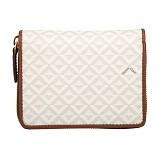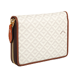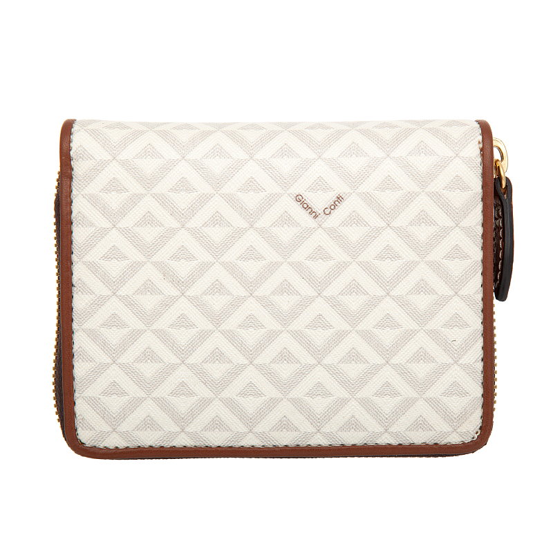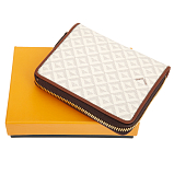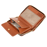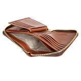 Портмоне выполнено из материала canva с окантовкой из натуральной кожи, что придаёт изделию винтажный вид. Закрывается на молнию. Внутри два отделения для купюр, карман для монет на кнопке, восемь кармашков для пластиковых карт, три потайных кармана и сетчатый кармашек. Цвет фурнитуры - золото. Товар упакован в подарочную коробку от бренда Gianni Conti. Размеры: 10 х 13 х 3 см.