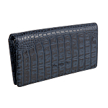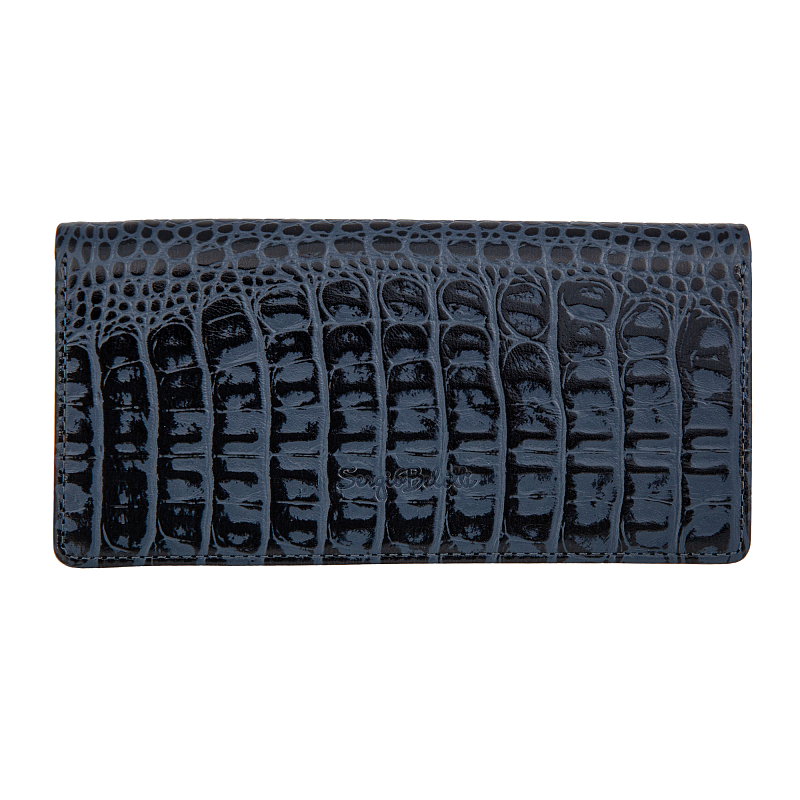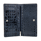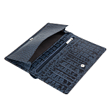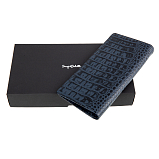 Кошелек из натуральной кожи синего цвета с тиснением под рептилию. Внутри одно отделение для купюр, карман для монет на молнии, два отдела для документов и шесть кармашков для пластиковых карт. Закрывается широким клапаном на кнопке. Товар упакован в подарочную коробку от бренда Sergio Belotti. Размеры: 9.5 х 19 х 2 см.