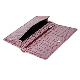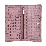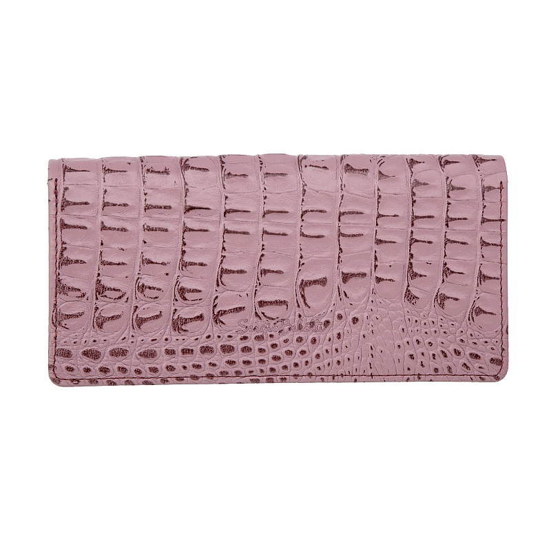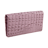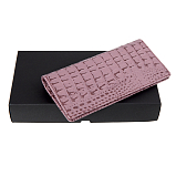 Кошелек из натуральной кожи розового цвета с тиснением под рептилию. Внутри одно отделение для купюр, карман для монет на молнии, два отдела для документов и шесть кармашков для пластиковых карт. Закрывается широким клапаном на кнопке. Товар упакован в подарочную коробку от бренда Sergio Belotti. Размеры: 9.5 х 19 х 2 см.
