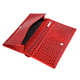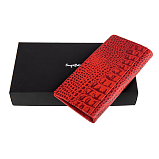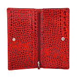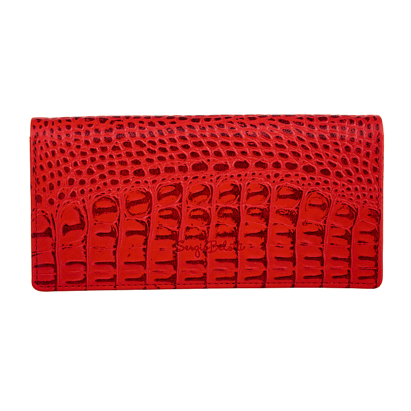 Женский кошелек из натуральной кожи красного цвета с тиснением под рептилию. Внутри одно отделение для купюр, карман для монет на молнии, два отдела для документов и шесть кармашков для пластиковых карт. Закрывается широким клапаном на кнопке. Товар упакован в подарочную коробку от бренда Sergio Belotti. Размеры: 9.5 х 19 х 2 см.