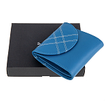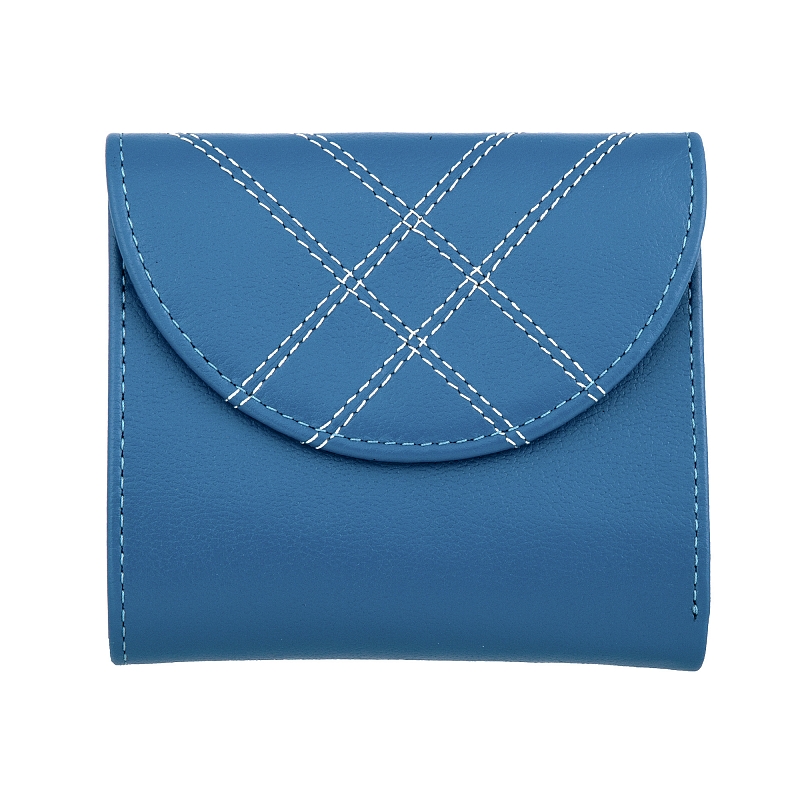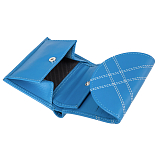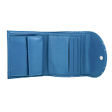 Стильный функциональный кошелёк из натуральной кожи синего цвета. Закрывается клапаном на кнопку. Внутри два отделения для купюр, один потайной карман, три кармашка для пластиковых карт, отделение для монет на кнопке. Товар упакован в подарочную коробку от бренда Sergio Belotti. Размеры: 11 х 10 х 3 см.