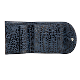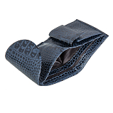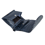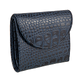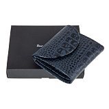 Стильный функциональный кошелёк из натуральной кожи синего цвета с тиснением под рептилию. Закрывается клапаном на кнопку. Внутри два отделения для купюр, один потайной карман, три кармашка для пластиковых карт, отделение для монет на кнопке. Товар упакован в подарочную коробку от бренда Sergio Belotti. Размеры: 11 х 10 х 3 см.