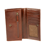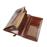 Внутри два отделения для купюр, потайной карман для документов, сетчатый карман для документов, карман на молнии, сетчатый карман и четыре кармашка для пластиковых карт. Закрывается клапаном на кнопке. С внешней стороны имеется карман для монет на молнии.