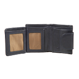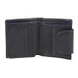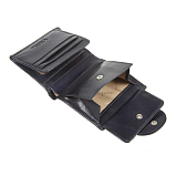 Внутри два отделения для купюр, карман для монет на кнопке, два потайных кармана, два кармана для документов, два сетчатых кармана и три кармашка для пластиковых карт. Закрывается клапаном на кнопке. Имеет защитный слой от считывания карт RFID-Protection.