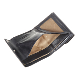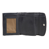Внутри два отделения для купюр и сетчатый карман. Закрывается клапаном на кнопке. С внешней стороны расположен карман для монет на кнопке.