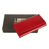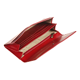 Внутри два отделения для купюр, карман для монет на молнии, потайной карман, два кармана для документов и десять кармашков для пластиковых карт. Закрывается клапаном на кнопке. Имеет защитный слой от считывания карт RFID-Protection.