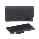 Внутри два отделения для купюр, потайной карман, два кармана для документов и двенадцать кармашков для пластиковых карт. Закрывается клапаном на кнопке. С внешней стороны на задней стенке имеется отделение, в котором расположена съёмная монетница на молнии. Имеет защитный слой от считывания карт RFID-Protection.