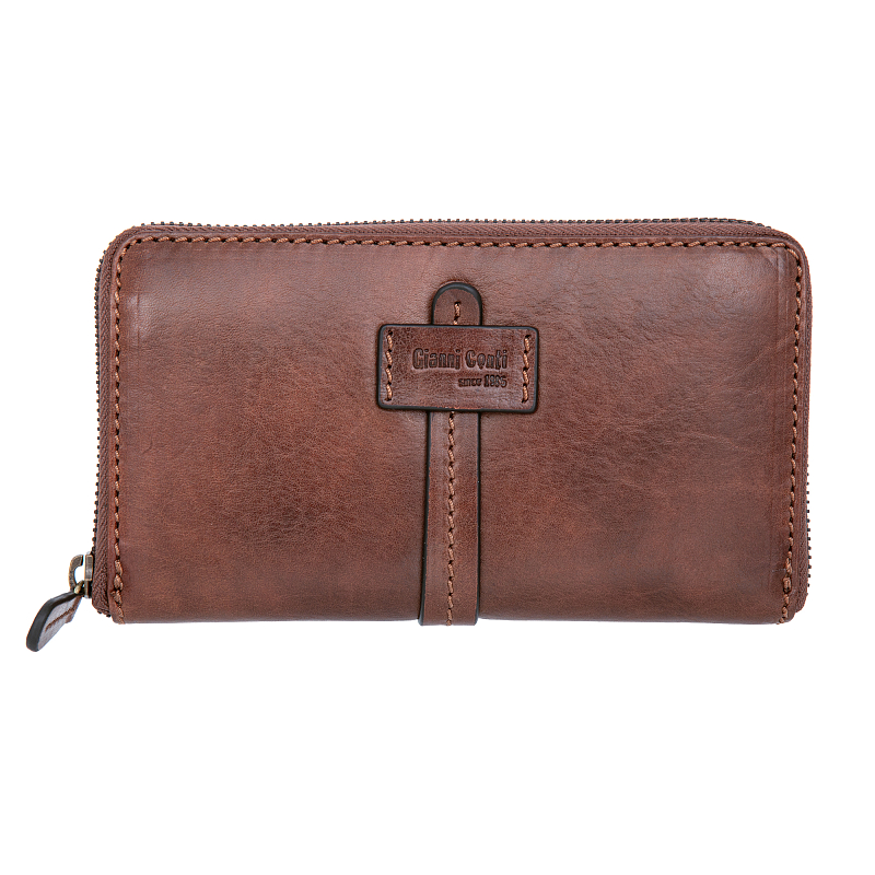 Женское портмоне Gianni Conti из натуральной кожи гладкой фактуры. Имеет 5 отделений для купюр, 12 кармашков для пластиковых карт и отделение на молнии. Оснащен RFID защитой. Закрывается на молнию по периметру.