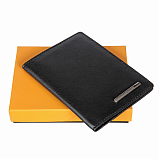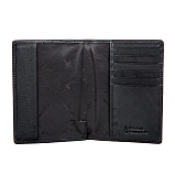 Внутри обложки на правой стороне расположен кожаный карман шириной 7 см, состоящий из шести кармашков для пластиковых карт. На левой кожаный карман шириной 3 см.