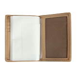 Внутри блок, состоящий из десяти прозрачных файлов и файла для водительского удостоверения. На правой внутренней стороне обложки располагается сетчатое отделение, на левой два больших отделения и пять кармашков для пластиковых карт. Имеет RFID-Protection (защитный слой от считывания карт).