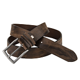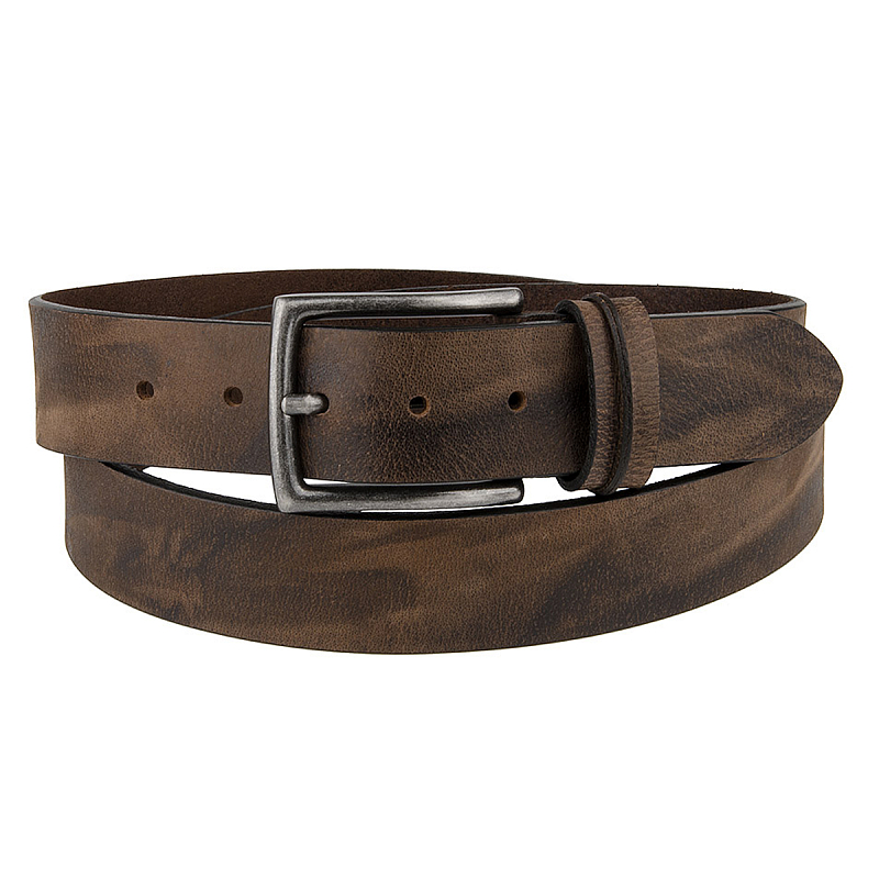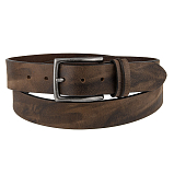 Коричневый джинсовый ремень Sergio Belotti изготовлен из натуральной воловьей кожи с пряжкой черненого серебра 5,5 х 6,5 см, модель с режущей системой уменьшения длины полотна до надлежащего размера