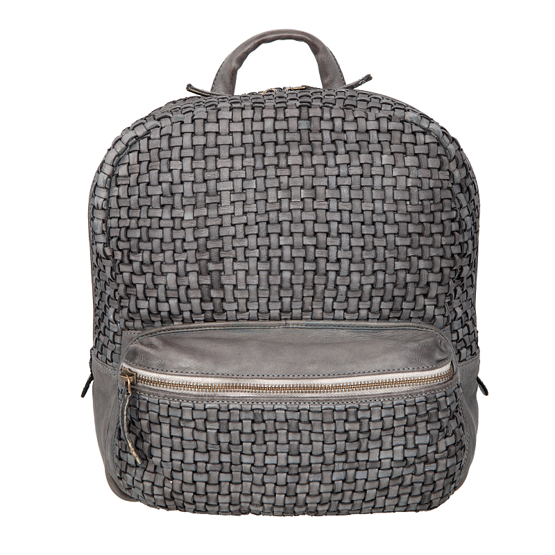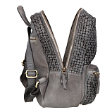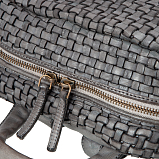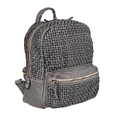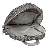 Женский серый плетёный рюкзак в ретро-стиле от бренда Sergio Belotti. Закрывается на молнию. Внутри одно вместительное отделение, мягкий отдел для планшета на липучке и карман для документов на молнии. На лицевой стороне накладной карман на молнии, на внутренней стороне продольный карман на молнии. Оснащён верхней ручкой и кожаными регулируемыми плечевыми лямками. Цвет фурнитуры - патинированная латунь. В комплекте мешок-пыльник для бережного хранения. Размеры: 30 х 24 х 12 см.
